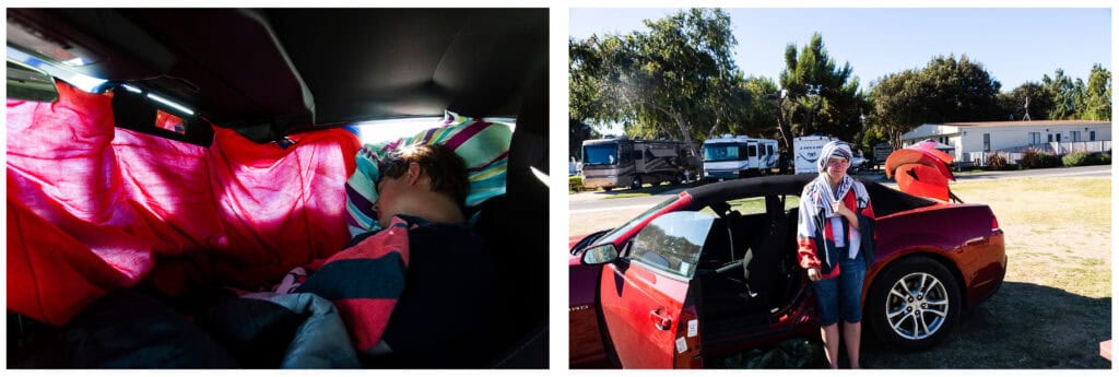 We were nervous that all of our bags wouldn’t fit in the tiny trunk and backseat. I don’t know why .. well actually I do; we were extremely inexperienced .. but we had with us four bags. And not small ones. No, no, four big ass suitcases or duffel bags. One just had an air mattress in it. I mean, I don’t know what we were thinking. If you’re taking notes, this is one of the important ones: Don’t overpack! And really rethink your choices before you pack an entire air mattress in just one suitcase.